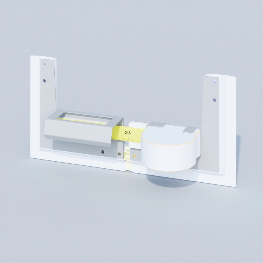 Měřidlo k určení rozměrů okna pro výrobu okenní sítě z profilu R50.